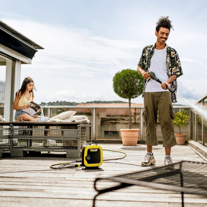 Kärcher's smallest pressure washer removes dirt in no time at all and, thanks to it being lightweight and a practical size, it can be transported and stored easily.